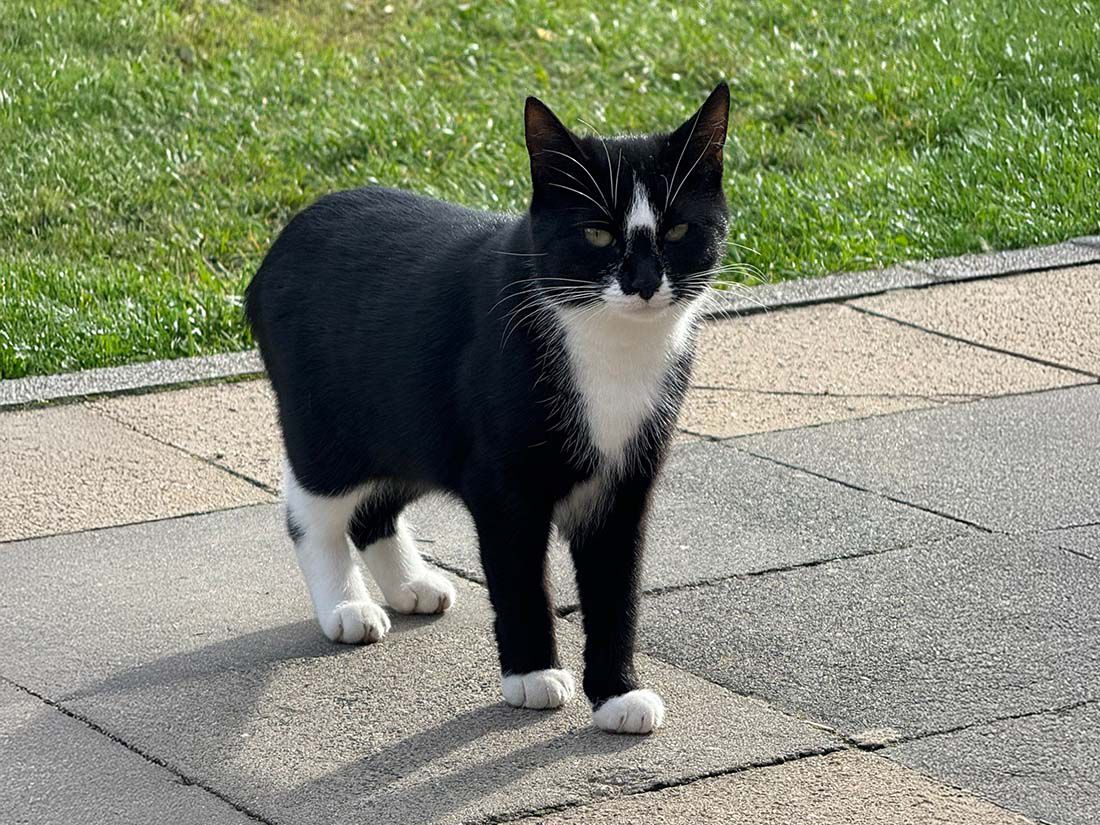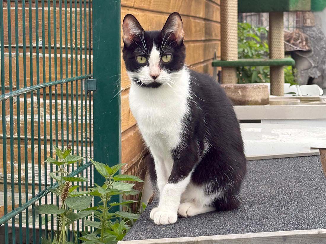 Bei der Kastration wurde festgestellt, dass meine Zähne stark entzündet waren. Bis auf 3 oder 4 Zähne mussten sie entfernt werden, damit ich wieder normal fressen kann. Heute lebe ich auf der Ranch, habe Freundschaft mit Lilly geschlossen und fühle mich endlich geborgen. Wir beide sind schwanz- und zahnlos, aber glücklich und umsorgt.