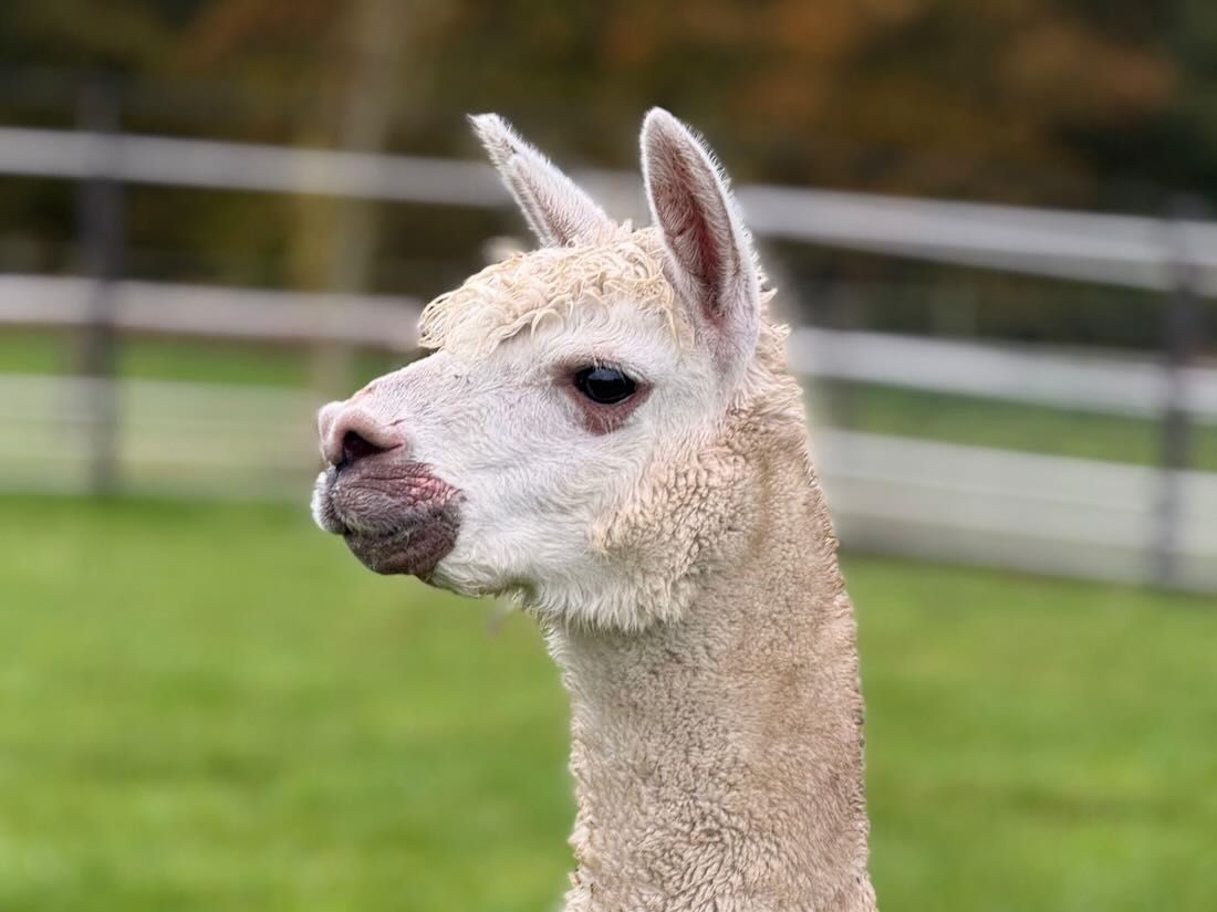 Hallo, ich bin Snö, ein Alpaka-Wallach, der im Oktober 2025 im Alter von etwa sechs Jahren auf die Ranch gezogen ist. Hinter mir liegt eine schwere Zeit: Ich stamme aus einer großen Sicherstellung wegen schlechter Haltung, bei der über 40 Alpakas gerettet wurden.