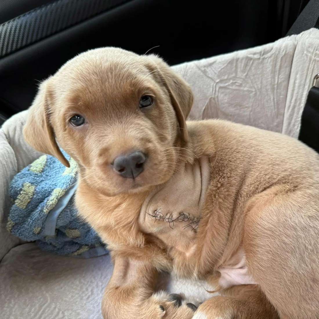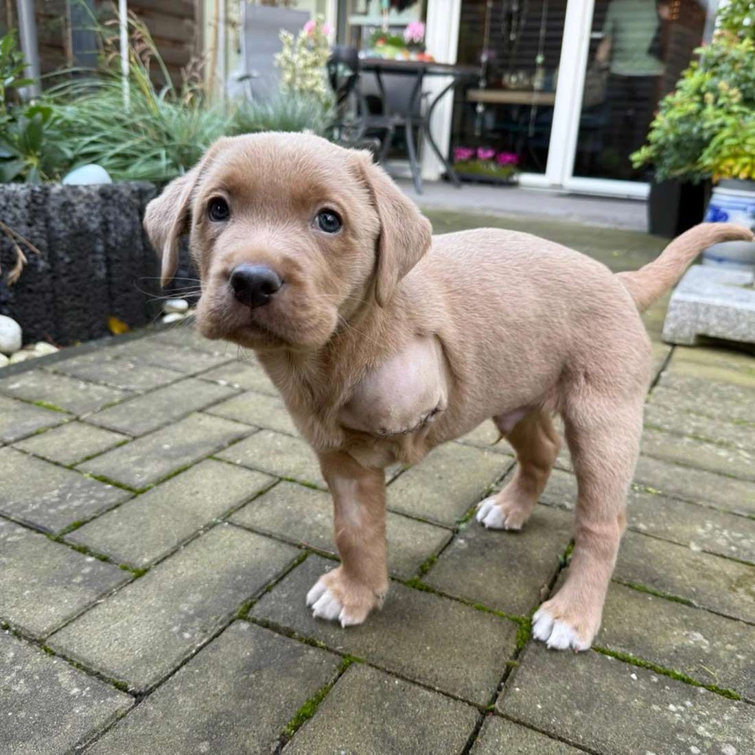 Eigentlich hatte ich schon einen Euthanasie Termin, denn ich wurde mit einem verkrüppelten Bein geboren. Ich war die Nummer 9 von 10, mein jüngstes Geschwisterchen wurde tot geboren. Der Tierarzt der MonRo Ranch hat dann einfach mal angerufen und nachgefragt, ob ich vielleicht dort unterkommen könnte, denn bis auf mein Beinchen, war ich top fit und ein ganz normaler Labrador Welpe. Ohne darüber nachzudenken haben die MonRo’s einfach ja gesagt und damit mein kleines Leben gerettet. So zog ich mit nur 8 Tagen um. Gesagt – getan! Schnell wurde eine Pflegestelle für mich eingerichtet und ich habe wirklich eine sehr, sehr liebe Pflegemama gefunden, wo ich wahrscheinlich auch für immer bleiben darf.
