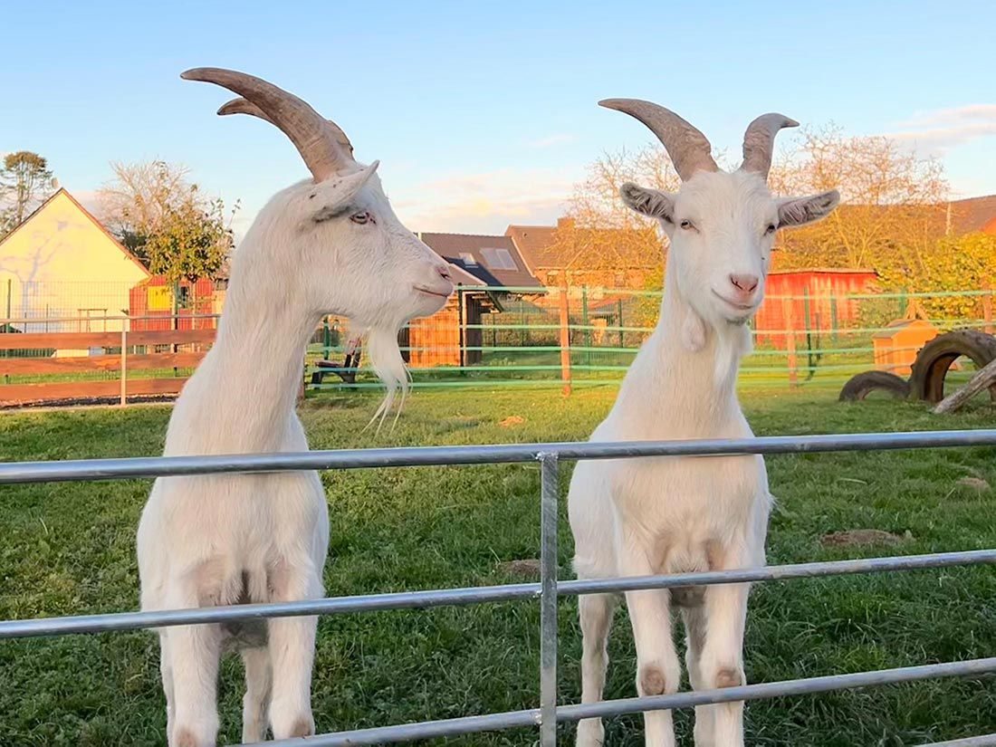 Die Aufregung war anfangs groß. Alles war neu, und wir wussten nicht genau, was uns erwartet. Wir waren beide etwas schüchtern, doch die Umgebung war so interessant, dass unsere Neugier schnell gewann. Die anderen Ziegen nahmen uns freundlich auf, und nach kurzer Zeit fühlten wir uns als Teil einer wunderbaren Ziegenfamilie.